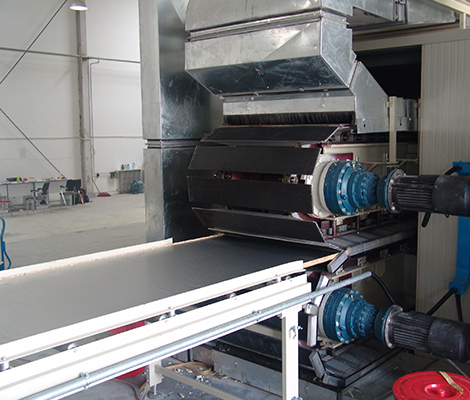 擁有國內從歐洲全套引進的柔性面材夾芯板連續(xù)生產線兩條。